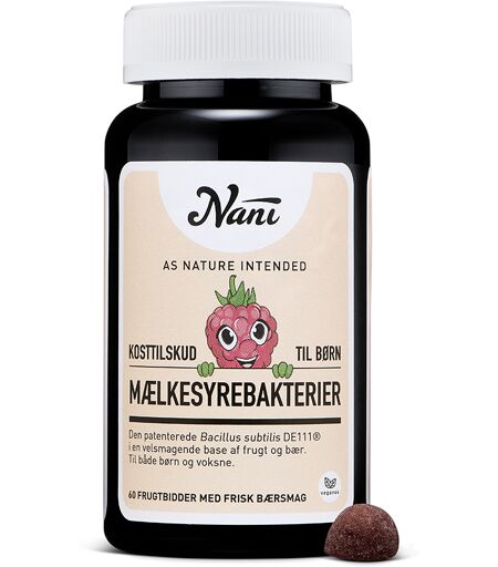 Nani mælkesyrebakterier er et unikt kosttilskud til hele familien og består af små frugtbidder. Produktet består udelukkende af naturlige ...