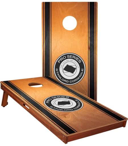 Cornhole kan spilles af 2 spiller eller som hold, kan spilles af både voksne og børn.Cornhole er et meget sjovt spil hvor alle kan være med, saml vennerne eller familien til en dejlig dag hvor i kan dyste mod hinanden. Cornhole er meget udbredt i USA hvor spillet er opfundet og i dag styres af American Cornhole Association. Bliver I rigtige dygtige til Cornhole, arrangeres der VM og internationale turneringer i Cornhole.Dette Stanlord Cornhole Pro spil er med de med de officielle mål til træning og turneringsbrug.Stanlord Cornhole har håndtag i siden, så de er nemme at transportere og stille op. Cornhole leveres med justerbar fødder, så de kan stå lige, selv på skæve gulve. Produkt størrelse målet LxBxH: 120x60x27,9 cm Kastepose: 15,8 x 15,8 cm - Vægt ca. 430 gramMonteret beskyttelses gummi under benene.Tykkelse på Cornhole spille pladen: 9 mmTykkelse på Cornhole siderne: 12 mmTykkelse på Cornhole benene: 186 mmVægt: 20 kg (Samlet)Der medfølger: 2 stk Cornhole Pro mål.8 stk kastepuder i 2 forskellige farverDansk og engelsk manual ...