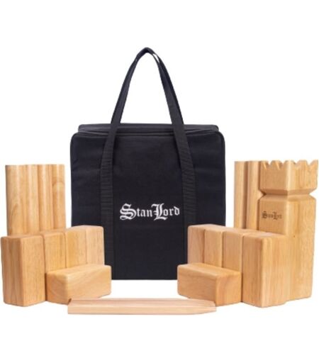 Kongespil Dette er en luksusudgave af Kongespil lavet af Stanlord, som er et dansk mærke der lægger vægt på kvalitet og finish. Det er fremstillet i gummitræ og fyrretræ, som er kendt for sin evne til at modstå forskellige vejrforhold og høj slagstyrke. Inkluderer: 1 x konge 30 x 9 cm 6 x Kastepinde 30 x 4,5 cm 10 x Riddere 15 x 7 cm 4 x Markeringspæle 1 x robust opbevaringstaske i lærred Vægt: 8,5 kg ...