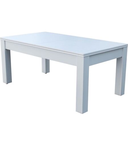 3-1 bord Stanlord Sanremo poolbord er et elegant spisebord der på få sekunder omdannes til et poolbord eller bordtennisbord. Der medfølger en 2-delt bordplade der giver en stabil overflade. Det eneste du skal gøre, er at fjerne de 2 plader, så har du et flot poolbord. Man kan også vende pladerne rundt og så er der et bordtennisbord. Stanlord Sanremo er lavet af slidstærk hård MDF og leveres med justerbare fødder, så du altid vil kunne få spisebord/poolbord /bordtennisbord til at stå nøjagtig lige, selv på ujævne gulve. Poolbordet er beklædt med et holdbart hastighedsklæde der giver præcise skud, banderne er lavet med samme gummi som de professionelle skiferborde. Tilbehør: 1 sæt 2 1/4" Baller 2 to-delte Køer 1 Trekant til oplægning af baller og børste til at rengøre poolbordet, 2 bordtennisbat, 3 bolde samt net. Professionelle gummibander og justerbare fødder Designet til 6 siddepladser Dimensioner (LxBxH): 186,4 x 105,2 x 81,2 cm Vægt inkl. tilbehør 94 kg Justerbare ben Materiale: MDF Træ ...