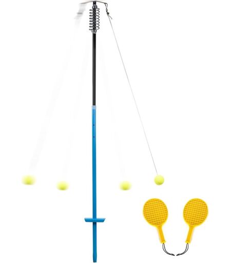 Sjov udendørs aktivitet for alle aldre Stanlord Stangtennis er det perfekte udendørsspil til sjov og fysisk aktivitet for hele familien, alle vennerne eller kollegaerne. Med justerbar højde og en stabil base er det let at sætte op og tilpasse til spillere i alle aldre. Dette spil er ideelt til havefester, stranddage eller hyggeligt eftermiddage i parken. Specifikationer: Justerbar højde: 152 cm, 159 cm eller 167 cm Inkluderet i sættet: 1 teleskopisk stang med base, 2 ketsjere, 1 bold ...