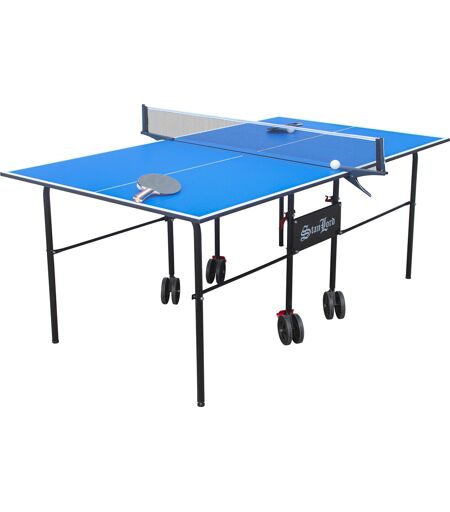 Stanlord Verona er et bordtennisbord i praktisk 2/3 størrelse, som passer ind i hjem, kontorer og andre rum med begrænset plads. Bordet er let at folde sammen og flytte, men har stadig en solid spilleplade og god stabilitet, der sikrer en ægte bordtennisoplevelse. Perfekt til dig, der vil spille seriøst, men ikke har plads til et standardbord. De vigtigste fordele: 2/3 størrelse bord – passer ind de fleste steder Kraftig 15 mm spilleplade med antireflekterende overflade Let at folde sammen og flytte med 4 låsbare hjul Leveres med net, 2 bat og 3 bolde Ideelt til hjemmet, kontoret eller sommerhuset Bordtennis uden at gå på kompromis Verona er et oplagt valg, hvis du ønsker spilleglæde i mindre skala. Den stabile konstruktion og den glatte, blå overflade giver en god spilleoplevelse, mens den kompakte størrelse gør det nemt at få bordtennis ind i hverdagen. Klar til kamp og nem at opbevare Bordet foldes hurtigt sammen og kan opbevares stående. Med store hjul og låsemekanisme er det let at flytte og sikkert at stille væk, når det ikke er i brug. Specifikationer: Farve: Blå Spilleplade: 15 mm med antireflekterende belægning Hjul: 4 stk 120 mm med lås Net: Monteres med clips Mål (LxBxH) 181 x 102,5 x 76 cm Mål sammenklappet (LxBxH): 105 x 65 x 147 cm Vægt: 40 kg Tilbehør: Net, 2 bat og 3 bolde ...
