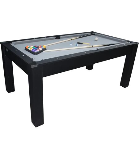 3-1 bord Stanlord Sanremo poolbord er et elegant spisebord der på få sekunder omdannes til et poolbord eller bordtennisbord. Der medfølger en 2-delt bordplade der giver en stabil overflade. Det eneste du skal gøre, er at fjerne de 2 plader, så har du et flot poolbord. Man kan også vende pladerne rundt og så er der et bordtennisbord. Stanlord Sanremo er lavet af slidstærk hård MDF og leveres med justerbare fødder, så du altid vil kunne få spisebord/poolbord /bordtennisbord til at stå nøjagtig lige, selv på ujævne gulve. Poolbordet er beklædt med et holdbart hastighedsklæde der giver præcise skud, banderne er lavet med samme gummi som de professionelle skiferborde. Tilbehør: 1 sæt 2 1/4" Baller 2 to-delte Køer 1 Trekant til oplægning af baller og børste til at rengøre poolbordet, 2 bordtennisbat, 3 bolde samt net. Professionelle gummibander og justerbare fødder Designet til 6 siddepladser Dimensioner (LxBxH): 186,4 x 105,2 x 81,2 cm Vægt inkl. tilbehør 94 kg Justerbare ben Materiale: MDF Træ ...