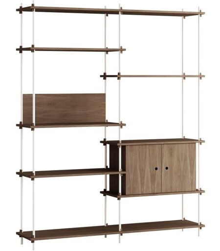 Moebe Shelving System Double w. Cabinet 200x162 cm - Smoked Oak/White