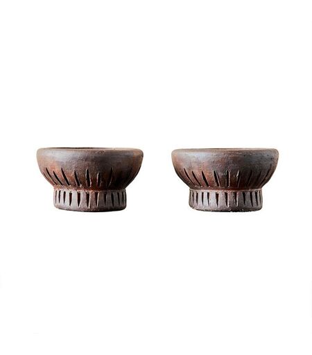 Muubs Fyrfadsstage Fire H: 5 cm 2 stk - Brun/Sort De smukke Fire fyrfadsstager fra Muubs er fremstillet af terracotta og brændt på åben ild, hvilket giver fyrfadslysene deres sjælefulde brune farve. Fyrfadsstagerne er også fødevaresikre, så udover at bruge dem på en traditionel måde med fyrfadslys, kan du med fordel bruge dem til at servere små snacks eller nødder. Indeholder 2 stk. fyrfadsstager. Designer: Birgitte Rømer Materialer: Terracotta Mål: Højde: 5 cm Diameter, Ø: 9 cm Farve: Brun/Sort ...