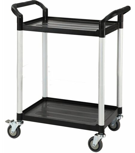 Lomax plastrullebord, 2 hylder Alumniumsrør og hylder i plast Mål (LxBxH): 80 x 48 x 95 cm Hyldestørrelse: 60,7 x 43,5 cm Afstand mellem hylder: 55,3 cm Kapacitet: 140 kg 4 massive gummihjul – 4 drejelige heraf 2 med bremse Vægt 10,5 kg Affaldsspand kan tilkøbes Leveres usamlet ...