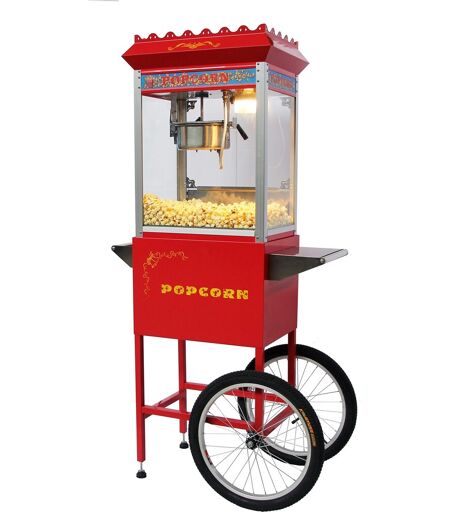 Popcornmaskine med 2 hjulLækre popcorn på få minutter!Denne røde popcornmaskine er designet i et brugervenligt og festligt design. Derudover imponerer den med sit belyste glasmontre, samt forskellige muligheder til at holde popcornene varme. Maskinen er lavet i rustfrit stål, og så er den utrolig nem at rengøre efter brug. Med 2 hjul kan den nemt og hurtigt flyttes rundt efter behov, og med de 2 gummifødder kan du være sikker på at den forbliver i position. Lav de bedste popcorn ved starte maskinen op, tilsæt herefter 50 ml. olie i gryden og vent 3-4 minutter. Så tilsætter man 150 gram majskorn og inden for 2 minutter begynder der, at poppe lækre popcorn op af gryden.Gør din firmafest, fødselsdag eller lignende arrangement til noget helt specielt med denne fantastiske popcornmaskine.Specifikationer: Produkttype: PopcornmaskineAnbefalet dosering: 50 ml olie / 150 gram majskornTemperaturer: 210-230 oCStrøm: 220 V / 50 Hz / 1,35 kWStørrelse: 56,5 x 42,5 x 76 cm Popcornmaskinens samlet størrelse (HxBxD): 165 cm x 84 cm x 53 cm ...
