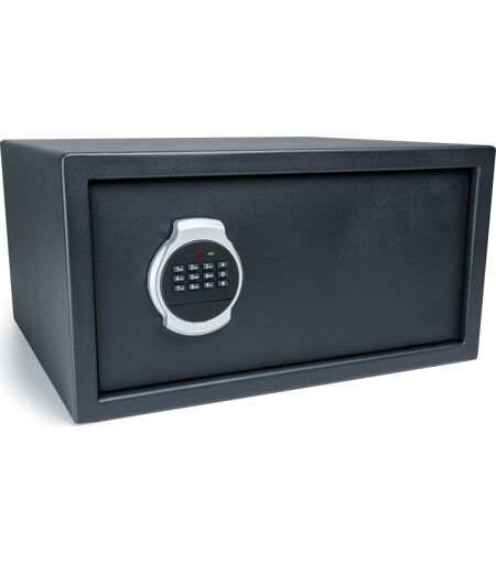 Værdiboks 23 liter m. kodelås Enkeltvægget sikkerhedsskab med et klassisk og enkelt design. Værdiskabet giver en sikker opbevaring af værdigenstande, dokumenter og personlige ejendele og er særdeles velegnet til din bærbar op til 16". Skabet har en flot pulverlakeret overflade i antracit og et tidløst design. En værdiboks som ligefrem pynter og passer godt ind på ethvert kontor og i ethvert hjem. KonstruktionVærdiboksen har en solid stål konstruktion og har en vægtykkelse på 2 mm, en låge på 4 mm og 2 solide låsebolte. FastboltningVærdiskabet er forberedt for fastboltning i både ryg og bund og sikrer at en eventuel tyv ikke løber bort med hele boksen. Bolte medfølger. LåsVærdiboksen er udstyret med en brugervenlig kodelås i et flot design, som nemt betjenes. Derudover er skabet udstyret med en mekanisk lås til nødstilfælde. Nødlås og batterier medfølger. Specifikationer: Passer til bærbare op til 16" Åbning: (HxB): 17x38,5 cm Udvendige mål (HxBxD): 230x460x400 mm Indvendige mål (HxBxD): 225x455x340 mm Kapacitet: 23 liter Vægt: 15 kg Kodelås, inkl. nødnøgle - 4xAA batterier Forberedt for fastboltning i ryg og bund (bolte medfølger) Farve: Antracit ...