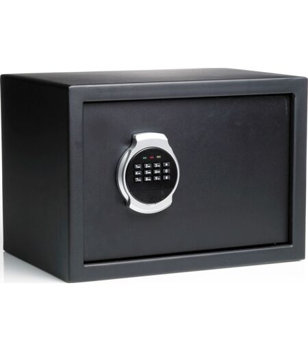 Værdiboks 15 liter m. kodelås Enkeltvægget sikkerhedsskab med et klassisk og enkelt design. Værdiskabet fylder ikke meget og giver en sikker opbevaring af værdigenstande, dokumenter og personlige ejendele. Skabet har en flot pulverlakeret overflade i antracit og et tidløst design. En værdiboks som ligefrem pynter og passer godt ind på ethvert kontor og i ethvert hjem. Udstyret med en hylde. Konstruktion Værdiboksen har en solid stål konstruktion og har en vægtykkelse på 2 mm, en låge på 4 mm og 2 solide låsebolte. Fastboltning Værdiskabet er forberedt for fastboltning i både ryg og bund og sikrer at en eventuel tyv ikke løber bort med hele boksen. Bolte medfølger. Lås Værdiboksen er udstyret med en brugervenlig kodelås i et flot design, som nemt betjenes. Derudover er skabet udstyret med en mekanisk lås til nødstilfælde. Nødlås og batterier medfølger. Specifikationer: Udvendige mål (HxBxD): 250x350x250 mm Indvendige mål (HxBxD): 247x347x210 mmKapacitet: 15 liter Vægt: 11 kg Kodelås, inkl. nødnøgle - 4xAA batterier Inkl. 1 stk. flytbar hylde Forberedt for fastboltning i ryg og bund (bolte medfølger) Farve: Antracit ...