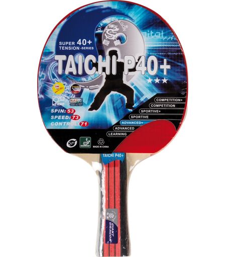 Giant Dragon TaiChi bordtennisbat - 3-stjernetTaiChi er et 3-stjernet bordtennisbat fra Giant Dragon - meget for pengene! Battet er lavet af 5-lags hårdt krydsfinér med gummi belægning, skum og konkav træ håndtag. Perfekt til hobbyspilleren, der gerne vil lidt mere. Bat tykkelse: 11,5 mmHastighed: 72 Spin: 52 Kontrol: 71 ...
