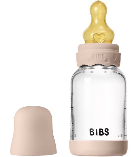 BIBS sutteflaske er omhyggeligt designet til babyer og forældre. Selve flasken er lavet af borosilikatglas, der tåler høje temperaturer, er holdbart, afgiver ingen skadelige stoffer til mælken og meget mere. Nipplen er specielt udviklet til at matche nipplen fra den populære BIBS Colour-sut og minder om moderens bløde brystvorte. Nipplen har en anti-kolik ventil, for at sikre det bedste mælkeflow til din baby. Nipplen er fremstillet af naturgummilatex. De øvrige dele er lavet i 100% fødevaregodkendt materiale. Overholder den europæiske standard EN14350. Denne vare ...