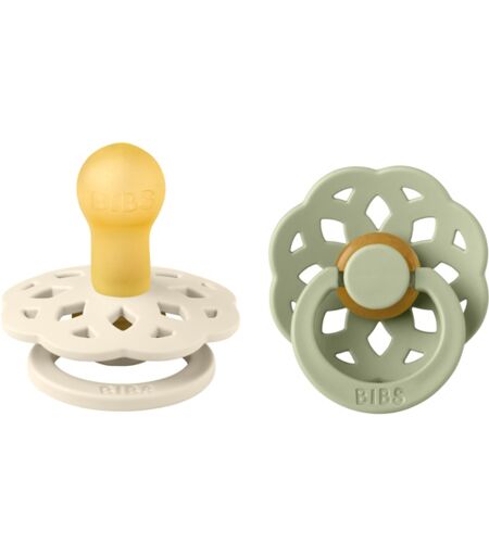 BIBS Boheme 2-pak Ivory/Sage Str. 1 i naturgummi med rundt suttehoved. BIBS Boheme er inspireret af den moderne bohemestil, der med sine naturlige elementer og organiske silhuet fremstår i et friskt, kreativt og æstetisk design Den runde nipple er designet til at ligne moderens bløde brystvorte og derved fremmer en lignende tungeplacering og sutteteknik ved amning, da den runde form tillader siderne af tungen at "rulle" omkring nipplen som den gør under amning. Skjoldet er lavet af fødevaregodkendt materiale og designet og produceret i Danmark/EU. 100% fri for BPA og ftalater. Overholder den europæiske standard EN 1400+A2. Size 1: 0-6 måneder ...
