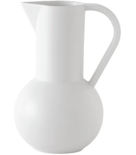 raawii Strøm Medium Kande H: 24 cm - Vaporous Grey Strøm Jug fra Rawii, designet af Nicholai Wiig-Hansen, er inspireret af 1900-tallets kubisme og Vilhelm Lundstrøms kunst. Wiig-Hansen har skabt en unik balance mellem form og funktion, hvor klassiske elementer kombineres med et moderne twist. Kanden er lavet i Portugal, og de nøje udvalgte glasurfarver fremhæver dens geometriske former og tilføjer et kunstnerisk udtryk. Med sit karakteristiske design og livlige farver er Strøm-kanden både dekorativ og funktionel. Uanset om den står på et elegant bord eller en enkel hylde, bidrager den til en stilfuld indretning. Design: Nicholai Wiig-Hansen Farve: Grå Materiale: Glaseret stentøj Mål: H: 24 cm Ø: 15 cm ...