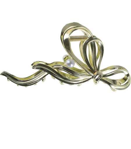 By Stær VINNY Hair Clip - Gold er en smuk hårklemme, som ikke blot er praktisk, men også super dekorativ. Den er utrolig kraftig, som gør at den har et godt hold i håret, så det ikke falder ned eller bliver løst når man sætter det op. Om man ønsker at sætte alt håret op eller blot en del af det, så er By Stær NICKY Hair Clip det helt perfekte valg når man samtidig ønsker at ens look skal have et pift. Detaljer: Hårklemme Guld sløjfe med hvid perle Både til hverdag og fest 12 cm ...