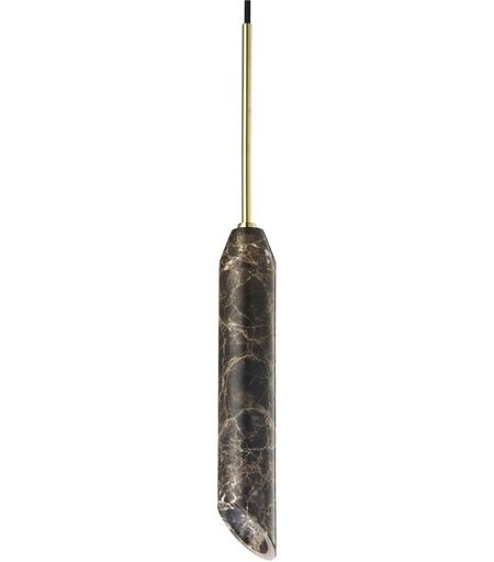 Design By Us Marble Art Pendant H: 30 cm - Brown Elegant pendel fra Design By Us. Marble Art er en smuk pendel med en aflang og smal cylinderskærm udført i marmor, som giver lampen et stramt og minimalistisk udtryk, der brydes af diskrete detaljer i form af skærmens skrå åbning såvel som guldfarvede detaljer på ledning og baldakin. Lampen har fået sit navn efter marmorstenens naturlige variationer i struktur og mønster, der tilsammen danner et unik kunstværk i marmor. Marble Art giver direkte belysning, som med fordel kan anvendes over køkkenbordet, spisebordet eller et helt tredje sted. Uanset placering i hjemmet vil lampen tilføre elegance til indretningen. Brug en enkelt Marble Art pendel alene eller sammensæt flere for at opnå en eksklusiv og dekorativ klynge af marmorpendler. Marble Art fås i flere skønne marmorfarver. Bemærk, marmor er en natursten, derfor vil små variationer i farve og/eller mønster forekomme, og hver pendel vil derfor være unik. OBS: Pære medfølger ikke. Designer: Rasmus Larsson Materiale: Marmor Belagt metal Tekstilledning Mål: Ø: 5 cm H: 30 cm Ledningens længde: 250 cm Vægt: 1,4 kg Tekniske specifikationer: Kun til indendørs brug Fatning: GU10 Lyskilde: Kun LED Max 10W (medfølger ikke) ...