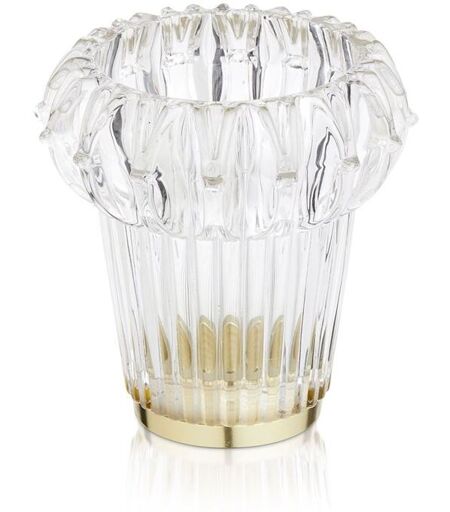 Design By Us New Wave Eyeball Ø: 12 cm - Gold Med tilbehørsdelen Eyeball, som passer til væglamperne fra New Wave Optic serien fra Design By Us, kan du skabe endnu mere blikfang med elegant lys. Med sine bølger og mønstret form i glasset skaber Eyeball klare associationer til retrolamper. Ved at placere Eyeball omkring pæren i din New Wave Optic væglampe forstærkes den bølgende lyseffekt. Du kan derfor skabe et iøjnefaldende spil mellem lys og skygge på væggen, hvorpå lampen hænger. Eyeball fås i to størrelser såvel som to farver. OBS: New Wave Optic lampe eller pære medfølger ikke. Designer: Rasmus Larsson Materiale: Glas Anodiseret aluminium Mål: Ø: 12 cm D: 11 cm ...