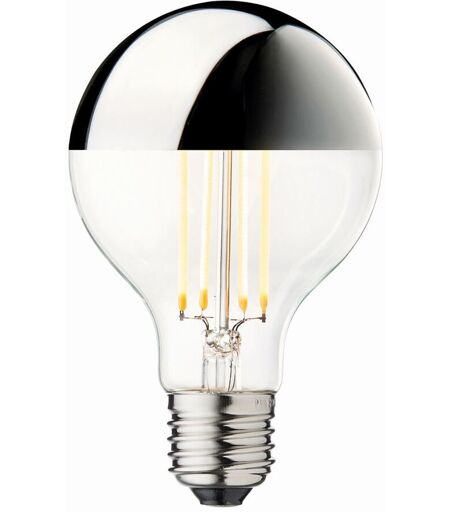 Design By Us Arbitrary Bulb Ø80 Crown E27 3,5W LED Dimmable H: 11,8 cm - Silver Smuk LED pære fra Design By Us. Denne pære passer til New Wave XL Wall lamper og Wanted serien fra Design By Us. Med denne pære kan du udnytte det fulde potentiale af din Design By Us lampe ved at lade en smuk lyskilde skinne gennem farvet såvel som klar glas. Den topforspejlede pære gør det muligt at placere den synligt i en lampe, uden at den blænder, ligesom pærens sølvfarvede top tilfører en dekorativ detalje til lampens samlede udtryk. Med Arbitrary Bulb opnår man derfor behagelig og hyggelig belysning, som samtidig skaber en flot refleksion ud i rummet. Pæren giver et varmt lys og kan dæmpes på praktisk vis. OBS: Lampen medfølger ikke. Miljøbillederne viser ikke denne vares reelle farve, men det viser dens udformning samt mulige anvendelse. Producent: Design By Us Mål: H: 11,8 cm Ø: 8 cm Vægt: 40 g Lysegenskaber: Sokkel: E27 Farvetemperatur: 2700 Kelvin Nominel lysstrøm: 245 Lumen Strømforbrug: Wattforbrug: 3,5W Tekniske specifikationer: Dæmpbar ...