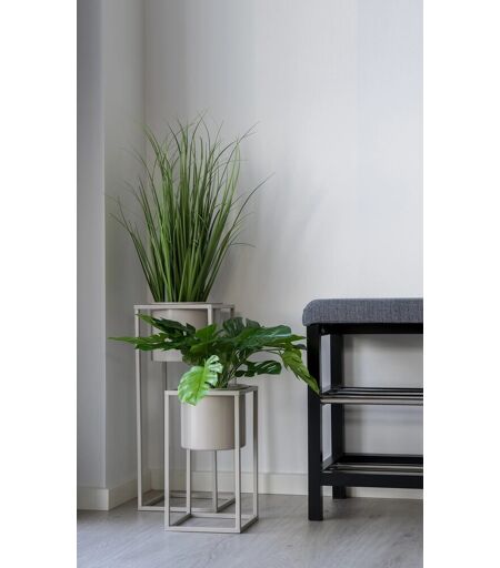 Smukke blomsterstandere i stål Marla blomsterstande fra House Nordic er designet til at præsentere dine planter på en smuk måde. Sættet indeholder to elegante potter på enkle standere, der skaber en flot effekt både i højden og stilen. Potterne er ideelle til at tilføje en naturlig følelse til dit hjem med deres diskrete beige farvetone, der komplementerer til alle slags planter.Om det er i stuen, på terrassen eller i entréen, så brug Marla blomsterstanderne, når du vil skabe en hyggelig og imødekommende stemning. Antal: 2 stk. Farve: Beige / Grå Mål (cm): H31/50,5 – L17/19,5 – B17/19,5 Materiale: Stål ...