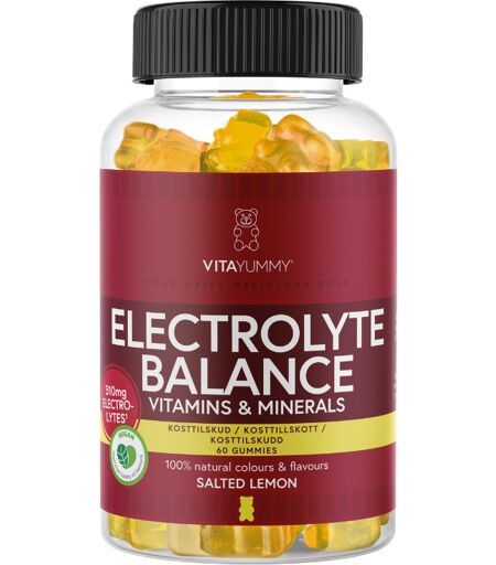 VitaYummy Electrolyte Balance (Salted Lemon) 60 stk. Vi er stolte over at kunne præsentere endnu en spændende nyhed, VitaYummy Electrolyte Balance, som har en lækker smag af salted lemon. VitaYummy Electrolyte Balance ...