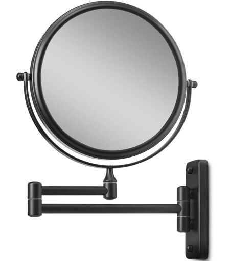 Gillian Jones Wall Mirror W/ Arm - Black er et super smart og effektivt spejl. Spejlet er nemt at montere på væggen, og den indbyggede 'arm' gør så man kan trække spejlet op til 31 cm ud, samt sætte det helt ind til væggen når man ikke bruger det. Spejlet er dobbeltsidet med 1x forstørrelse på den ene side og 10x forstørrelse på den anden, og kan roteres 360 grader. Med dette spejl er det meget lettere at lægge den perfekte makeup, hvor man kan præcisere selv de mindste detaljer. Detaljer: Spejl Mat sort Nem at montere på væggen Kan trækkes ca. 31 cm ud fra væggen Dobbeltsidet med 1x og 10x forstørrelse Kan roteres 360 grader 20 cm i diameter ...