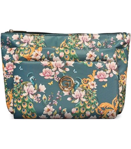 Gillian Jones 3 Room Cosmetics Bag -Green Flowers 10009-76