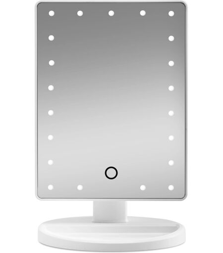 Gillian Jones Makeup Table Mirror LED-Light og Touch - White er det perfekte tilbehør til enhver kvinde, der elsker at lægge makeup. Med sit smukke hvide design og LED-lys, vil dette spejl helt sikkert tilføre lidt ekstra glamour til din daglige makeup-rutine. Den smarte touch-funktion gør det nemt at tænde og slukke for lyset, samt justere lysstyrken, så du altid har den perfekte belysning til at lægge din makeup. Spejlet kan også tiltes, så du nemt kan finde den optimale arbejdsvinkel, uanset om du sidder ved dit makeup-bord eller står foran badeværelsesspejlet. Med sin størrelse er dette spejl både praktisk og stilfuldt, og det perfekte valg for kvinder i alle aldre. Spejlet bruger 4 x AA batterier (medfølger ikke). Detaljer: Spejl Kan tiltes LED-lys med touch-funktion Justerbar lysstyrke Højde: 27 cm. Bredde: 16,5 cm. Dybde: 15,5 cm Bruger 4 x AA batterier (Medfølger ikke) Kan også anvendes med strømforsyning og USB C kabel USB C til USB A kabel medfølger ...