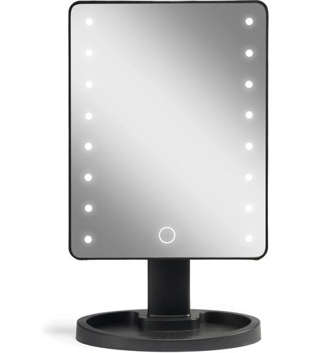 Gillian Jones Hollywood Mirror with Touch og USB-C - Black 10261-00 er et smart bordspejl med 16 kraftige LED-lys, som giver dig optimale forhold, når du skal udføre din daglige hudplejerutine eller lægge en smuk makeup. Spejlet er med touch-funktion, så det er let at tænde og slukke for lyset. Det kan også tiltes, så du nemt kan finde den optimale arbejdsvinkel. I spejlets fod er der desuden en lille bakke, som kan bruges til opbevaring af mindre genstande, som f.eks. hårnåle, smykker m.m. Spejlet bruger 4 x AA batterier eller det kan få strøm fra det medfølgende USB-C kabel (batterier og strømadapter medfølger ikke). Detaljer: Bordspejl 16 kraftige LED-lys Touch-funktion Kan tiltes Indbygget bakke i foden Bruger 4 x AA batterier (medfølger ikke) Kan også anvendes med strømforsyning og USB-C kabel USB-C kabel medfølger Mål: H: 26,5 cm B: 17 cm D: 12 cm ...