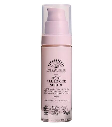 Açai All in One Serum er et avanceret og nøje formuleret serum til alle, som vil have klar hud med en ensartet hudtone. Den revolutionerende ingrediens RetinART er et virksomt bio-retinol, som synligt reducerer rynker og linjer og hjælper til at udjævne hudens pigmentering - i effektivt samspil med en aktiv og stabiliseret form af vitamin C, som gør huden klar og strålende og ligeledes ensarter hudtonen. Hyaluronsyre erstatter mathed og tørhed med glød og smidighed og binder fugten i huden, så den bliver mere fyldig. Açaiolie beriger huden med essentielle fedtsyrer, og mikroalgen, haematococcus pluvialis, giver huden et boost fra antioxidanter, som styrker huden og beskytter mod frie radikaler. Certificeret med Svanemærket, Ecocert COSMOS Organic og Vegan Trademark. ...