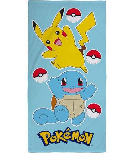 Licens Pokémon håndklæde - 70x140 cm - 100% bomuld - Blødt børnehåndklæde med Pikachu og Squirtle