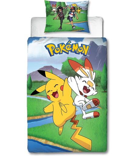 Licens Pokemon sengetøj 140x200 cm - Scorbunny, Hau, Pikachu og Ash - 2 i 1 sengesæt - 100% bomuld