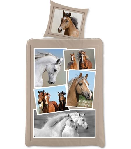 Licens Heste sengetøj 140x200 cm - Heste sengetøj med små billeder - 2 i 1 design - Dynebetræk i 100% bomuld