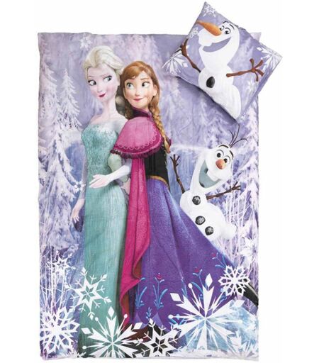 Licens Frozen sengetøj - 150x210 cm - Anna, Elsa & Olaf - Dynebetræk med 2 i 1 design - 100% bomuld