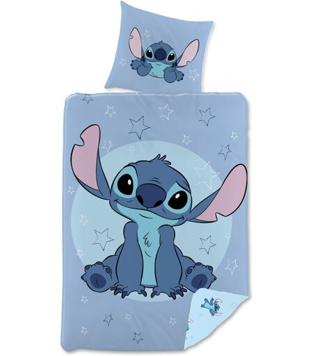 Licens Stitch sengetøj - Vendbart sengesæt med stjerner og Stitch - 140x200 cm - 100% bomulds sengelinned
