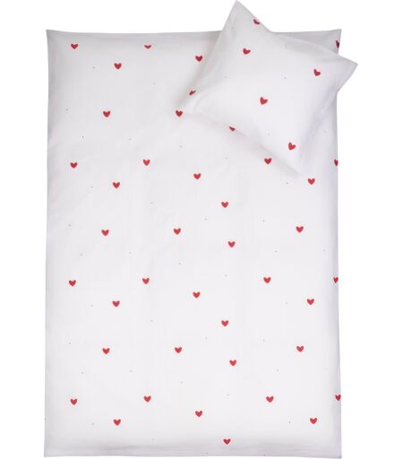 Nordstrand Home Baby sengetøj 100% bomuld - 70x100 cm - Hvidt sengesæt med fine røde hjerter - blødt dynebetræk
