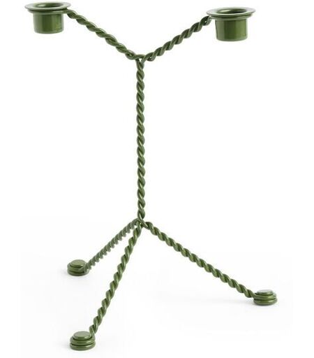 HAY Wire Candleholder H: 25 cm - Green Wire lysestagen, designet af den hollandske designer Chris Kabel, er fremstillet af et enkelt stykke snoet ståltråd, der er bøjet til en dobbelt kandelaber. De to lysestager øverst balanceres af de tre skrå ben, hvilket skaber et simpelt, men elegant design, der kan anvendes på vindueskarme, spiseborde eller andre overflader i hjemmet. Fås i forskellige farver. Designer: Chris Kabel Materiale: Stål Mål: L: 19 cm B: 19 cm H: 25 cm ...