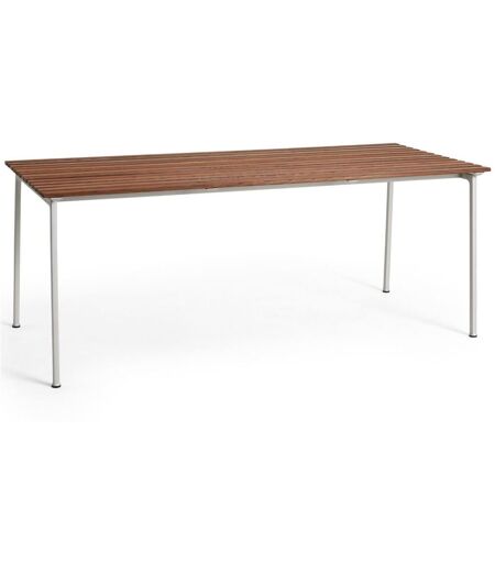 HAY Traverse Table L: 190 cm - Oiled Solid Ash Designet af Erwan Bouroullec for HAY er Traverse bordet en del af en udendørsmøbelkollektion, der er skabt til at falde naturligt ind i omgivelserne. Bordet består af en ramme i støbt aluminium og et sæde med lameller i varmebehandlet ask. Denne kombination sikrer både en robust konstruktion og et indbydende udtryk, der med tiden udvikler en smuk patina. Med sin harmoniske æstetik og multifunktionelle design kan Traverse bordet anvendes sammen med andre møbler i Traverse-serien og passer til en bred vifte af private og offentlige rum. Design: Erwan Bouroullec Materiale: Aluminium Ask Mål: B: 83 cm L: 190 cm H: 74 cm Farve: Brun Vedligeholdelse og rengøring: Rengør med en ren klud vredet i vand eller en mild sæbeblanding. Fjern sæberester med det samme med en ren og tør klud. Undgå at bruge rengøringsmidler der indeholder silikone, da de kan forsegle pletter og forhindre optimal vedligeholdelse af overfladen. Brug aldrig blød sæbe eller opløsningsmidler som sprit, terpentin og acetone. ...