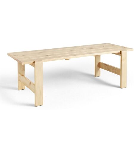 HAY Weekday Table Spisebord L: 230 cm - Lacquered Pinewood Weekday er designet af Hannes & Fritz, og består af en samling af udendørs bænke og borde, med et robust udseende samtidigt med bløde, afrundede former og udstråler varme og indbyder til hyggelige timer med venner og familie. Weekday er fremstillet af slidstærke fyrretræsplanker med vejrbestandig overfladebehandling, der vil patinere smukt med tiden. Bænken kan benyttes indenfor såvel som udenfor - det er kun fantasien som sætter grænser, og sættet kan bruges alverdens steder i hjemmet som for eksempel i haven, på terrassen og på altanen. Bemærk: Knaster vil være synlige og er en naturlig del af bordets udtryk og karakter Designer: Hannes & Fritz, 2023 Materialer: Fyrretræ lakeret med vandbaseret lak Mål: Længde: 230 cm Højde: 74 cm Bredde: 83 cm ...