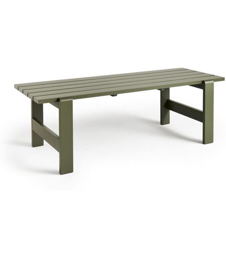 HAY Weekday Table Spisebord L: 230 cm - Olive Weekday er designet af Hannes & Fritz, og består af en samling af udendørs bænke og borde, med et robust udseende samtidigt med bløde, afrundede former og udstråler varme og indbyder til hyggelige timer med venner og familie. Weekday er fremstillet af slidstærke fyrretræsplanker med vejrbestandig overfladebehandling, der vil patinere smukt med tiden. Bænken kan benyttes indenfor såvel som udenfor - det er kun fantasien som sætter grænser, og sættet kan bruges alverdens steder i hjemmet som for eksempel i haven, på terrassen og på altanen. Bemærk: Knaster vil være synlige og er en naturlig del af bordets udtryk og karakter Designer: Hannes & Fritz, 2023 Materialer: Fyrretræ lakeret med vandbaseret lak Mål: Længde: 230 cm Højde: 74 cm Bredde: 83 cm ...