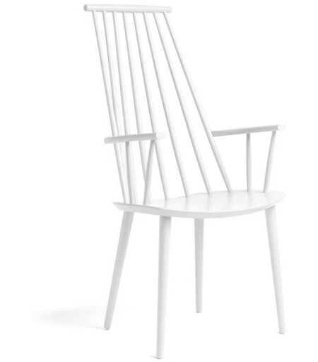 HAY FDB J110 Spisebordsstol - White Lacquered Beech Den kendte J110 spisebordsstol er designet af Poul M. Volther og gengives nu af HAY. J110 er en spisebordsstol krydser komforten fra en loungestol og funktionaliteten fra en spisestol. Stolen udstråler æstetik og er ikke mindst praktisk. De lange stænger på stolens ryglæn og det buede armlæn skaber et indbydende udtryk. Stolen kan bruges som spisebordsstol, men kan uden problemer også fremstå på en fritstående placering. Designer: Poul M. Volher, 2011 Materiale: Bøg, vandbaseret lak Mål: Bredde: 53 cm Dybde: 60 cm Højde: 106 cm Sædehøjde: 44,5 cm Sædebredde: 42 cm Farve: Hvidlakeret Vedligeholdelse: Se vedhæftet PDF dokument. ...