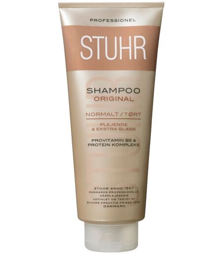 Stuhr Original shampoo er en super nærende og skånsom shampoo, som er specielt god til dig med normalt til tørt hår. Shampooen er beriget med provitamin B5 og protein kompleks, som er med til at styrke dit hår, samtidig med at den renser og tilfører ekstra glans uden at tynge håret. Når du har forkælet dit hår med Stuhr Original Shampoo, vil du opleve at dit hår bliver utrolig blødt og skinnende. Fordele: Shampoo Til normalt til tørt hår Nærende og skånsom Styrker og renser Giver glans uden at tynge Gør håret blødt Med provitamin B5 og protein kompleks Anvendelse: Masseres ind i vådt hår til det skummer Skyl grundigt Afslut med Stuhr Original Conditioner ...