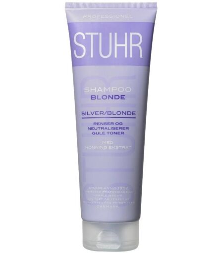 Stuhr Blonde Shampoo er en skøn silvershampoo, der med sine violette pigmenter, neutraliserer uønskede gule toner i blondt hår. Shampooen renser dit hår uden at tynge det, mens indholdet af honning ekstrakter og fugtighedsbevarende glycerin, plejer håret i dybden. Når du har vasket dit hår med Stuhr Blonde Shampoo vil du få et flot lyst hår, med en moderne kold undertone. Fordele: Silvershampoo Til blondt, gråt eller afbleget hår Neutraliserer uønskede gule toner Renser uden at tynge Fugter og plejer Med honning ekstrakter og glycerin Anvendelse: Anvendes 1-2 gange om ugen Masseres ind i vådt hår Skyl grundigt ...