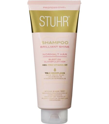 Stuhr Brilliant Shine Shampoo er en super lækker shampoo, der med sine fantastiske egenskaber, giver den smukkeste glans helt uden at tynge håret. Shampooen er beriget med inca inchi olie, jojobaolie og vindruekerne olie, som giver nærende pleje til dit hår. Derudover indeholder den provitamin B5, som forbereder hårets modstandskraft mod luftfugtighed, hvilket er med til at give en anti-frizz effekt. Denne skønne shampoo dufter desuden dejligt af slik og tyggegummi, så man næsten får lyst til at spise den. Når du har vasket dit hår med Stuhr Brilliant Shine Shampoo vil du opleve at dit hår føles naturlig blødt, mere skinnende, rent og frisk. Fordele: Shampoo Alle hårtyper Gør håret blødt, skinnende, rent og frisk Giver nærende pleje Tynger ikke Anti-frizz Duft af slik og tyggegummi Med inca inchi olie, jojobaolie og vindruekerne olie Anvendelse: Masseres ind i vådt hår til det skummer Skyl grundigt Afslut med Stuhr Brilliant Shine Conditioner ...