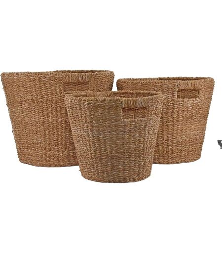 Sæt af 3 kurve i forskellige størrelser, lavet af søgræs. Sættet indeholder 3 forskellige størrelser af kurve, som er lavet af søgræs. Høj funktionalitet kombineret med et naturligt og æstetisk design. Kurvene kommer med indbyggede håndtag, så de er nemme at flytte rundt på, oplagt til opbevaring af alt fra tæpper og blade til planter. Passer godt ind i hjemmet, kontoret eller til din butiksindretning. Materiale: Søgræs. Farve: Naturlig. Mål (HxD): 38 x 46 – 34 x 40 – 30 x 34 cm. ...