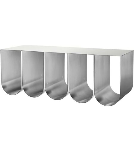 Kristina Dam Curved Bench B: 110 cm - Børstet Stål Curved Bench kombinerer moderne design med skulpturelle detaljer. De elegante, bløde kurver er udført i børstet rustfrit stål af høj kvalitet, mens de integrerede buer giver praktisk opbevaringsplads til dine yndlingsbøger og magasiner. Bænken er en del af Curved-serien, som er skabt for at tilføre dit hjem et dristigt og nutidigt udtryk. For et stilrent look og ekstra opbevaringsmuligheder kan du tilføje Curved Boxe til bænken. Den er alsidig i brug – som sofabord i stuen, bænk ved spisebordet, konsol eller en praktisk løsning i entréen. Materiale: Rustfrit Stål Farve: Sølv Mål: H: 42 cm B: 110 cm D: 40 cm ...
