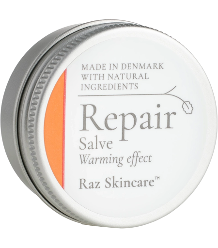 Raz Skincare Repair Warming Effect er en varmende salve, som er ideel at bruge til ømme og irriterede muskler og led. Denne salve er beriget med mentol, kamfer, kajaput, kryddernellike, chili, eukalyptus og forskellige typer mynte. Tilsammen giver disse naturlige ingredienser en meget varm fornemmelse i huden, som kan resultere i en følelse af lindring ved ømhed i led og muskler. Denne salve kan bruges til alle typer af ømhed i både muskler og led, f.eks. på ryg eller lår. Raz Skincare Repair Warming Effect kan med fordel påføres muskelområder, inden de skal præstere mere end det normale, som f.eks. ved træning eller havearbejde, men kan ligeledes anvendes på områderne både under og efter fysisk arbejde. Raz Skincare Repair Warming Effect kan være din nye helt, når kroppen skal yde en ekstra indsats. Alt i alt en fantastisk salve, der er ideel at have stående derhjemme, så du kan sætte hurtigt ind med dulmende varme og pleje. OBS: Må IKKE anvendes i ansigtet, på tynd/irriteret/udsat hud eller til børn! Fordele: Varmende salve Kan dulme ømhed og irritation i muskler og led Med naturlige, varmende ingredienser Velegnet til alle typer af ømhed i muskler og led Kan påføres både før, under eller efter anstrengelse Naturlige ingredienser Til anvendelse på kroppen Anvendelse: Varm en passende mængde op mellem hænderne Påføres de ønskede områder Kan bruges både før, under og efter opstået ømhed Vask hænderne grundigt efter påføring Er muskler og led meget ømme, kan salven påsmøres i et tykt lag, dækkes med et tyndt lag stof og sidde natten over Ingrediensliste: Lanolin, Butyrospermum Parkii Butter, Menthol, Camphor, Cera Alba, Olea Europaea Fruit Oil, Carthamus Tinctorius Seed Oil, Theobroma Cacao Seed Butter, Melaleuca Leucadendron Cajuputi Leaf Oil, Eugenia Caryophyllus Bud Oil, Capsicum Frutescens Fruit Extract, Helianthus Annuus Seed Oil, Eucalyptus Radiata Leaf/Stem Oil, Mentha Arvensis Herb Oil, Mentha Spicata Herb Oil, Limonene, Linalool, Geraniol. ...