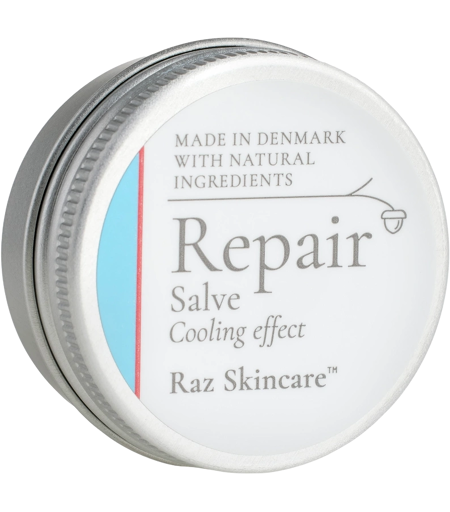 Raz Skincare Repair Cooling Effect er en kølende udgave af Raz Skincare Repair. Den er udviklet med samme plejende og reparerende egenskaber, som den originale salve. Derudover er den også tilsat mentol, kamfer og eukalyptus, der giver en behagelig, kølende og prikkende fornemmelse i huden. Denne salve kan bruges både i ansigtet og på kroppen og til flere formål. Den er særlig god at bruge i forbindelse med forkølelse, hvor den kan modvirke tørhed og rødme omkring næsen og på læberne, eller den kan påføres hals og bryst inden du skal sove, hvor den kan give en følelse af lindring til luftvejene. Raz Skincare Repair Cooling Effect er ligeledes ideel at smøre i et tyndt lag på hævede muskler og led, ligesom den også kan beskytte huden mod vejrpåvirkninger. Derudover kan salvens prikkende og kølende egenskaber også udnyttes på læberne, der kan få dem til at fremstå en lille smule mere fyldige. Snyd ikke dig selv for at prøve denne fantastiske Raz Skincare Repair Cooling Effect. Den kan hurtigt blive et uundværligt produkt, og bør findes i alle hjem. Fordele: Kølende salve Plejende og reparerende Kølende og prikkende fornemmelse på huden Med mentol, kamfer og eukalyptus Kan bruges både i ansigtet og på kroppen Ideel at bruge ved forkølelse Modvirker tørhed og rødme Kan give en følelse af lindring til luftvejene Beskytter huden mod vejrpåvirkninger Også god til hævede muskler og led Naturlige ingredienser Anvendelse: Masseres ind i huden på de ønskede områder Undgå at komme for tæt på øjnene, da salven kan irritere dem Vask hænderne grundigt efter påføring Ingrediensliste: Lanolin, Olea Europaea Fruit Oil, Carthamus Tinctorius Seed Oil, Butyrospermum Parkii Butter, Cera Alba, Theobroma Cacao Seed Butter, Menthol, Menthyl Ethylamido Oxalate, Camphor, Eucalyptus Radiata Leaf/Stem Oil, Limonene, Linalool, Geraniol. ...