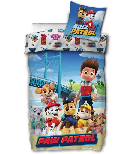 Licens Paw Patrol sengetøj - 100% blødt bomuld - 140x200 cm - Dynebetræk Roll with the Patrol - Vendbart design sengesæt