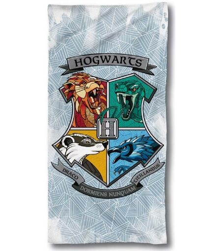 Licens Harry Potter håndklæde - 70x140 cm - 100% bomuld - Blødt badehåndklæde med farvet Hogwarts logo