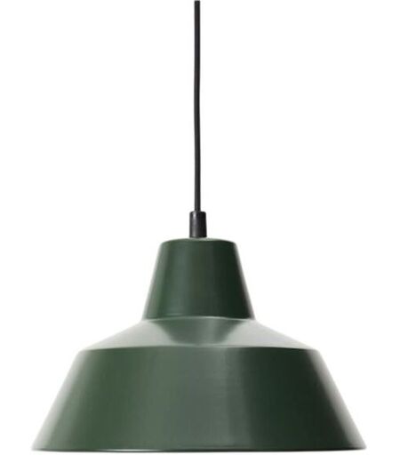 Made By Hand Workshop Lamp W3 Ø: 35cm - Racing Green Klassisk lampe fra Made By Hand. Denne danske klassiske lampe er designet af A. Wedel-Madsen i 1951, og er også kendt som værkstedslampen. I dag ses den ofte på restauranter, skoler, og nu også i de private hjem. Sammen med den massive sokkel og stofledningen, vidner det om at der ikke kun er fokus på godt håndværk, men også kvalitet. Workshop lampen vil med sit solide og industrielle look passe perfekt ind i minimalistiske indretninger. Du kan nemt hænge den over spisebordet, i køkkenet eller i gangen. OBS: Miljøbilledet viser ikke farven på denne lampe, men viser lampens udformning samt mulige anvendelse i indretningen. Design: A. Wedel-Madsen Materiale: Aluminium Mål: H: 24 cm Ø: 35 cm Ledningslængde: 3 meter Specifikationer: E27 - Max 60W - Ikke inkluderet IP20 CE-certificereret ...