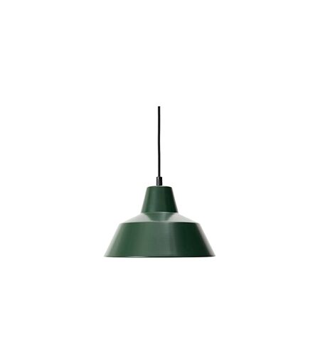 Made By Hand Workshop Lamp W2 Ø: 28 cm - Racing Green Klassisk lampe fra Made By Hand. Denne danske klassiske lampe er designet af A. Wedel-Madsen i 1951, og er også kendt som værkstedslampen. I dag ses den ofte på restauranter, skoler, og nu også i de private hjem. Sammen med den massive sokkel og stofledningen, vidner det om at der ikke kun er fokus på godt håndværk, men også kvalitet. Workshop lampen vil med sit solide og industrielle look passe perfekt ind i minimalistiske indretninger. Du kan nemt hænge den over spisebordet, i køkkenet eller i gangen. Design: A. Wedel-Madsen Materiale: Aluminium Mål: H: 19 cm Ø: 28 cm Ledningslængde: 3 meter Farve: Grøn Sort stofledning Lyskilde: E27 max 60W - Ikke inkluderet ...